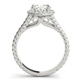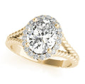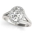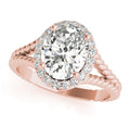 Surrounded by a halo of smaller diamonds, it's like a stripper with her entourage. And that twisted band? It's there to remind you of all the fun you'll have getting twisted together.